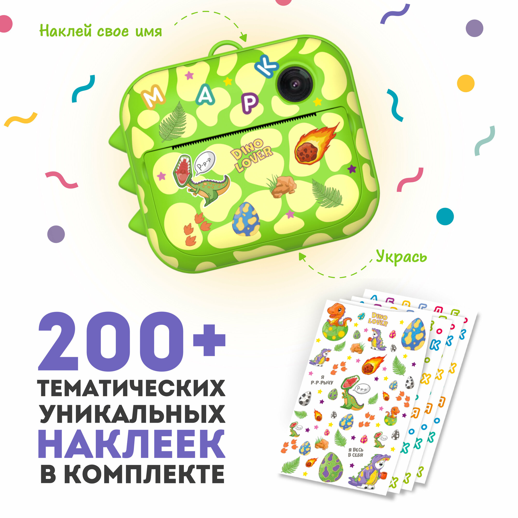 Фотоаппарат моментальной печати LUMICAM PRINTY DK04 GREEN DINO