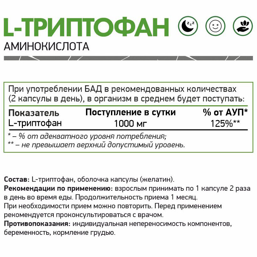 Триптофан 500мг (60 капсул) NaturalSupp интересное: