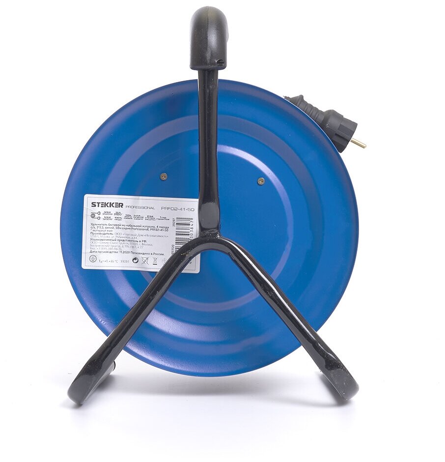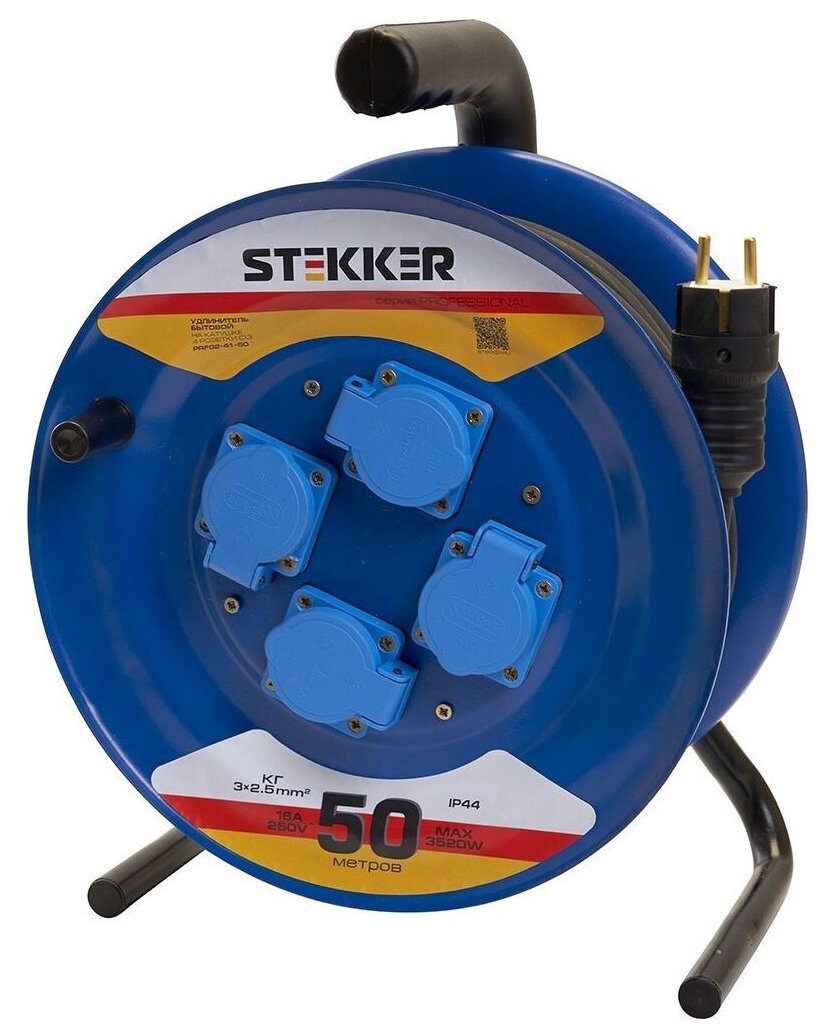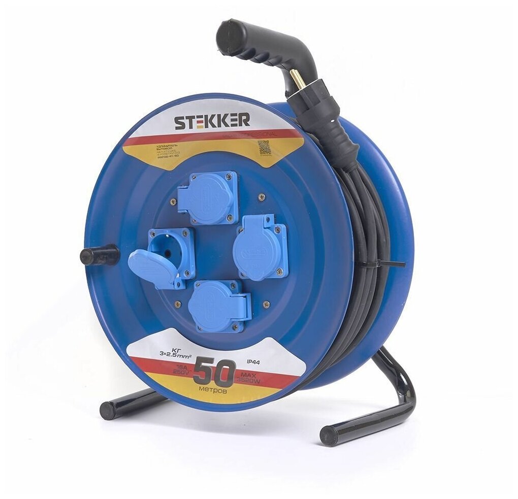 STEKKER Удлинитель на металлической катушке 4-местный с/з Stekker, PRF02-41-50, 50м, 3х2,5 морозостойкий, серия Professional, синий 39297