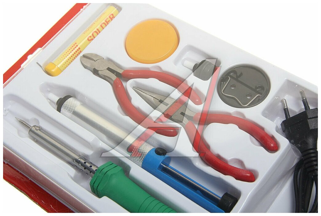 набор для пайки №13 (паяльник 30вт, подставка, канифоль, припой, бокорезы, тонкогубцы) rexant 12-0166