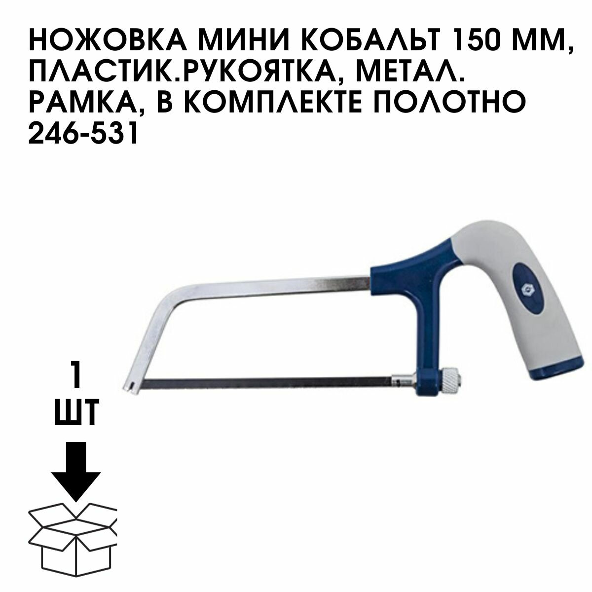 Ножовка мини кобальт 150 мм, пластиковая рукоятка, металлическая рамка,в комплекте полотно по алюминию/пластику