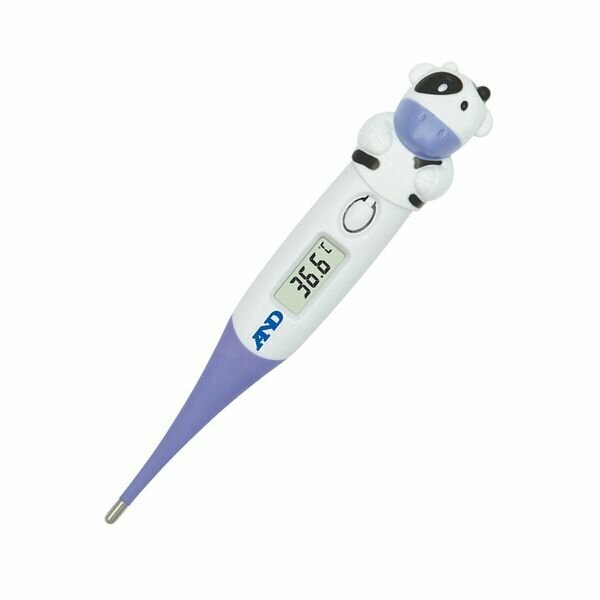 Цифровой термометр детский с гибким нетравмирующим наконечником AND DT-624 "Коровка" / измерение за 60 сек / звуковой сигнал /с футляром