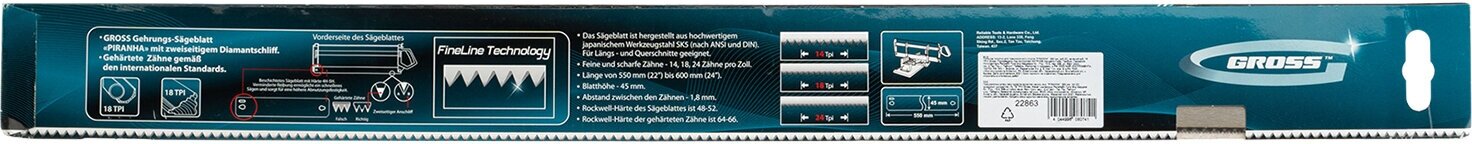 GROSS Пильное полотно для прецизионного стусла "PIRANHA" 550 мм 18 TPI GROSS 22863