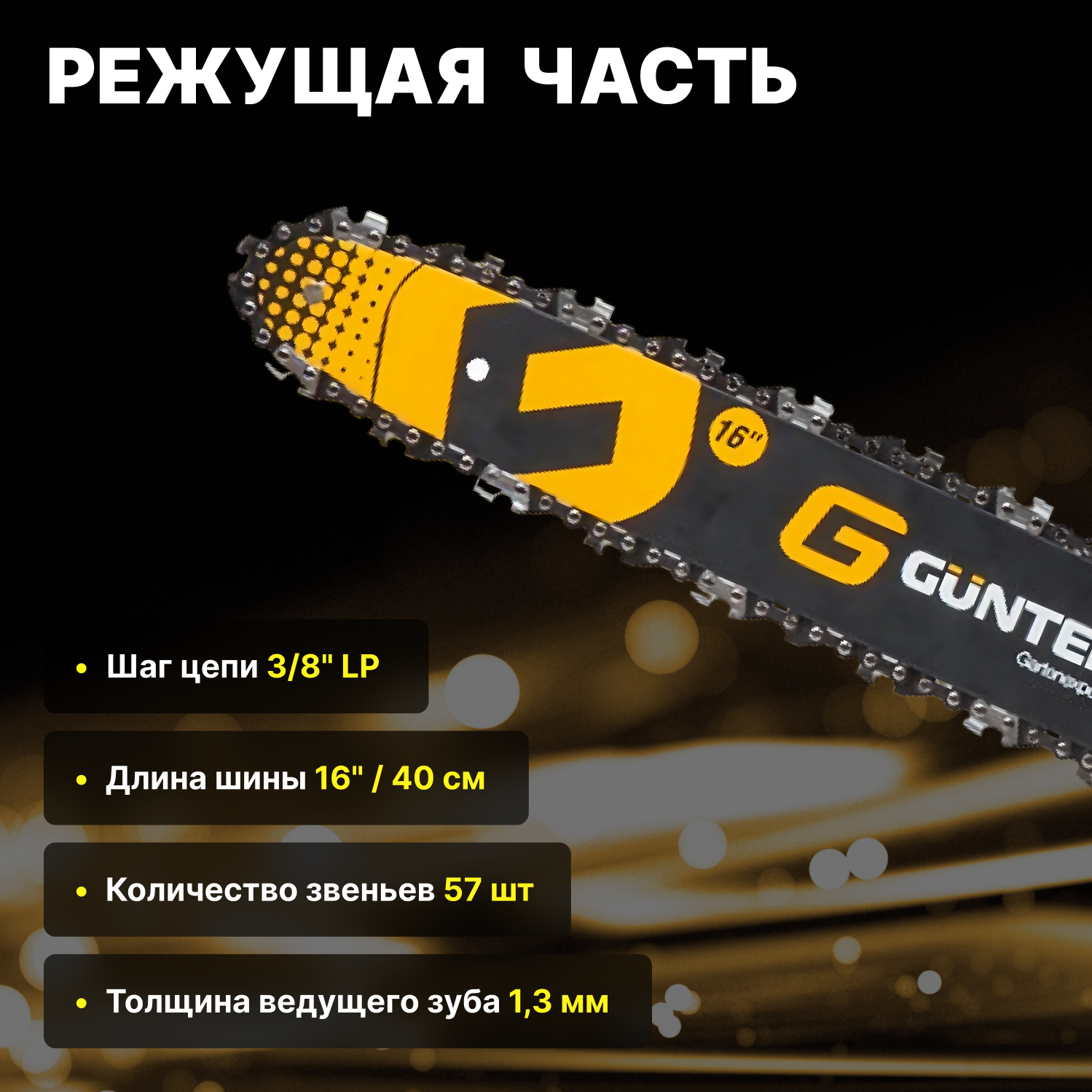 Бензопила Gunter MSH-4505 шина 40 см (16''), 3/8" LP, 1,3 мм, 57 зв. (2.20 кВт, 2.95 л.с., 45 см3, вес 7 кг) (GUNTER)