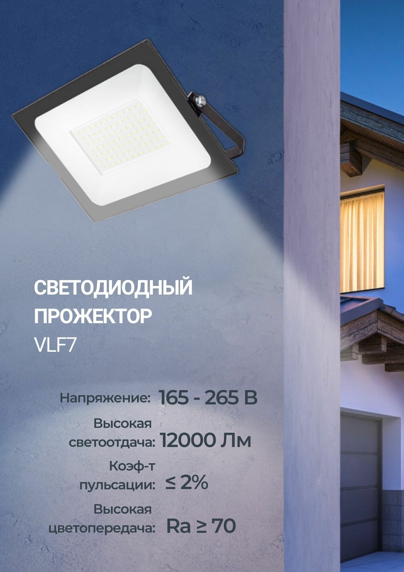 СохранитьПрожектор светодиодный 100Вт 6500К 12000Лм 220V IP65 (VLF7-100-6500-В) интересное: