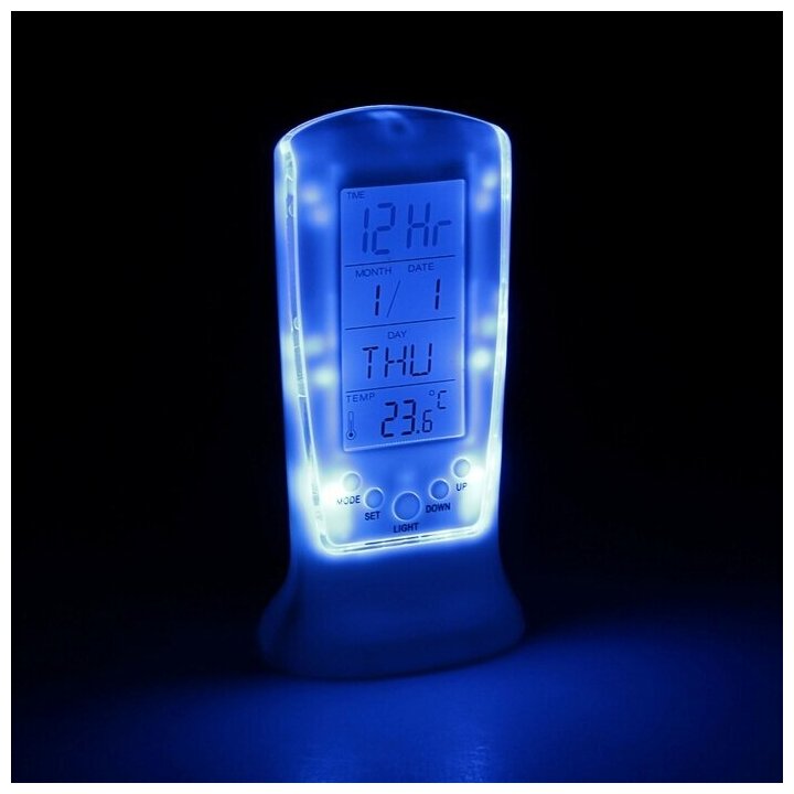 Будильник Luazon LB-02 "Обелиск", часы, дата, температура, подсветка, белый 835058
