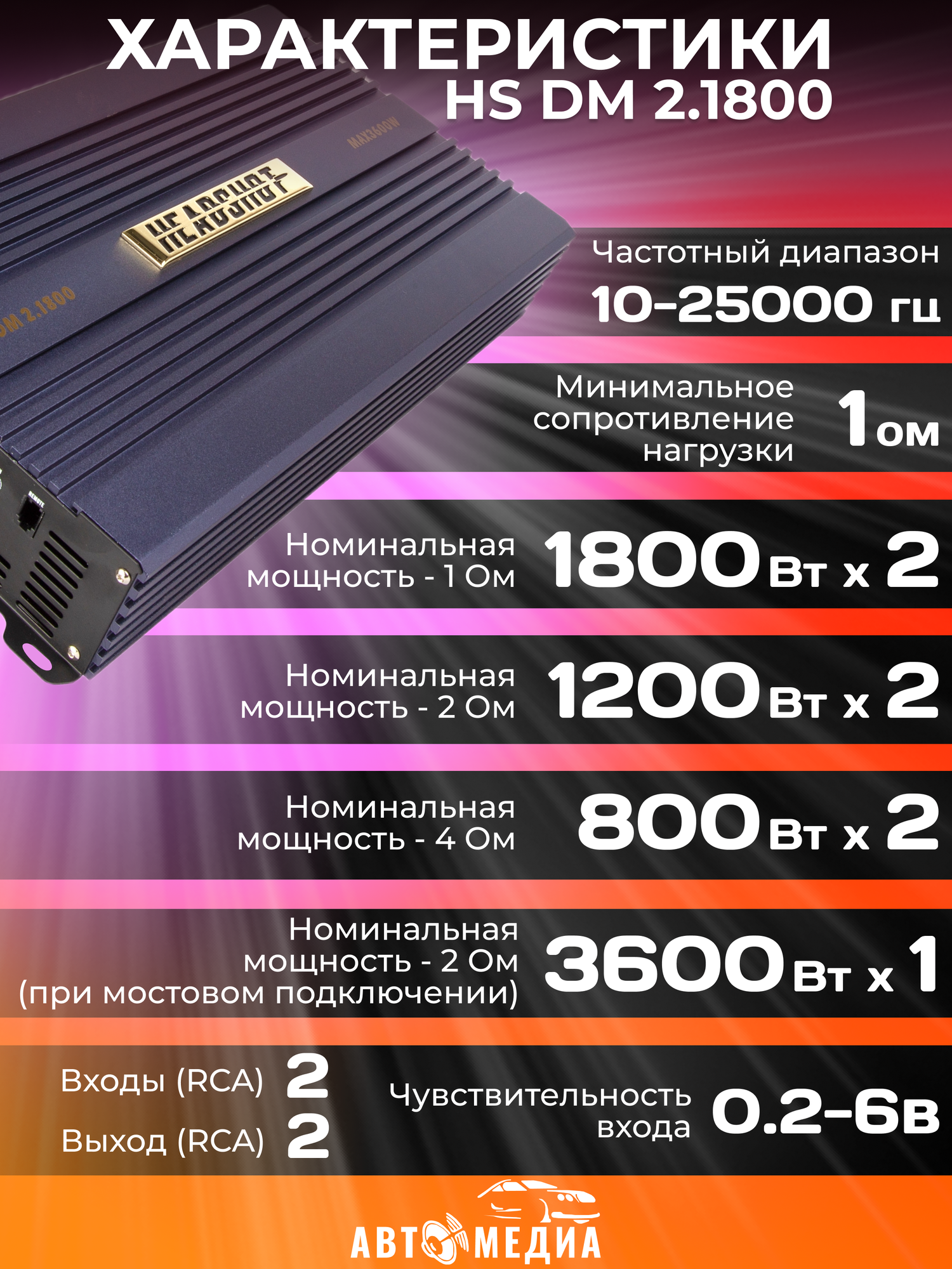 Автомобильный усилитель HS DM 2.1800