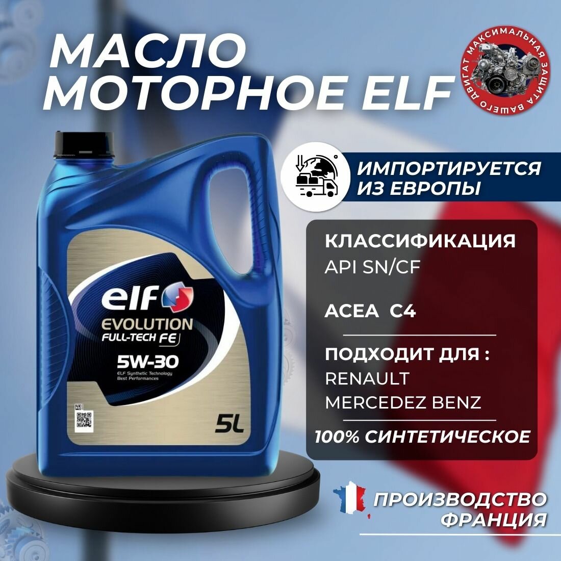 Масло моторное 5w30 elf 5л синтетика full tech fe (двигатели с сажев.фильтром), elf, 213935