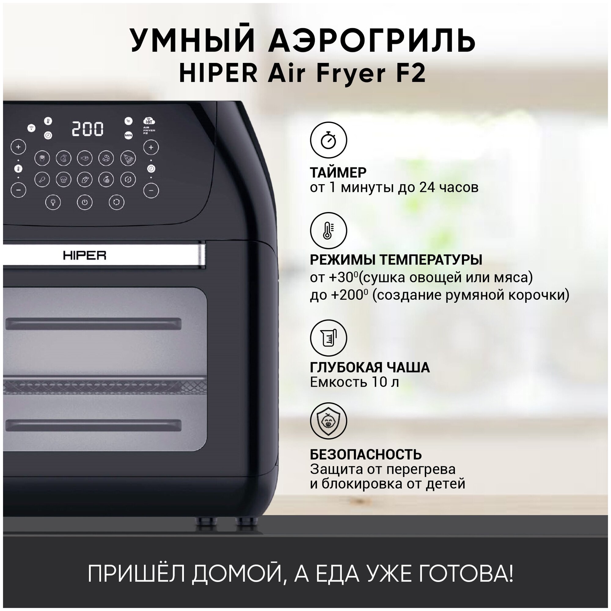 Умный аэрогриль HIPER IoT Air Fryer F2 интересное:
