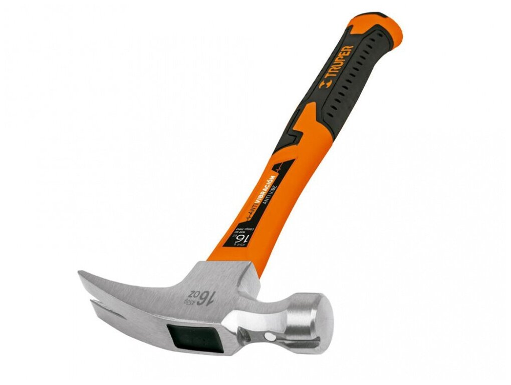 Купить Молоток-гвоздодер с полированным бойком, виброгасящая ручка 0,45кг. TRUPER 19997