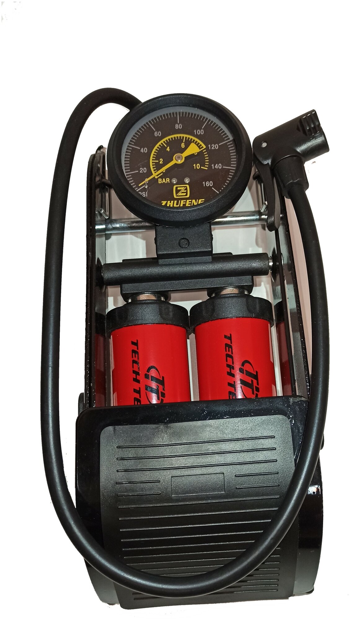 Насос ножной двухцилиндровый Tech Team J44B-01 A/V с комплектом переходников интересное: