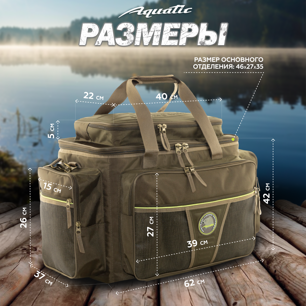 Сумка рыболовная Aquatic С-19Х (62х37х42 см, цвет: хаки)