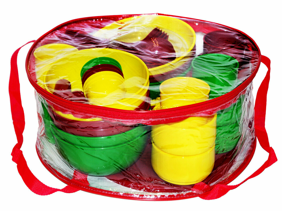 | Плюсы: | Полный набор посуды на 6 человек. Тв?рдый пищевой пластик. Удобное хранение в пакете на молнии. |