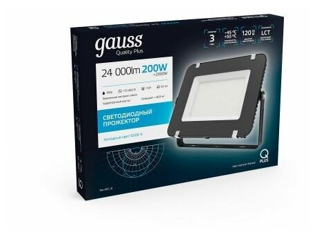 Прожектор Gauss Qplus 200W 24000lm 5500K 175-265V IP65 черный LED
