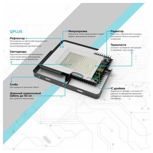 Прожектор светодиодный Gauss Qplus 200W 5500К 613100200