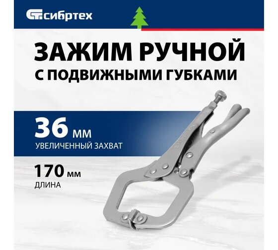 Купить Зажим ручной, увеличенный захват, подвижные губки, 170 мм// Сибртех