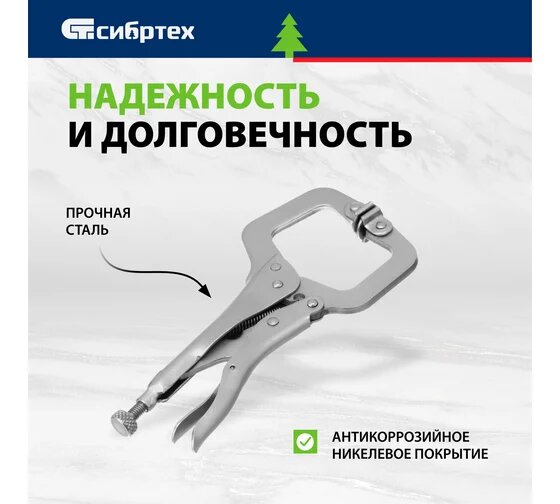 СИБРТЕХ Зажим ручной, увеличенный захват, подвижные губки, 270 мм Сибртех, ( 18426 )