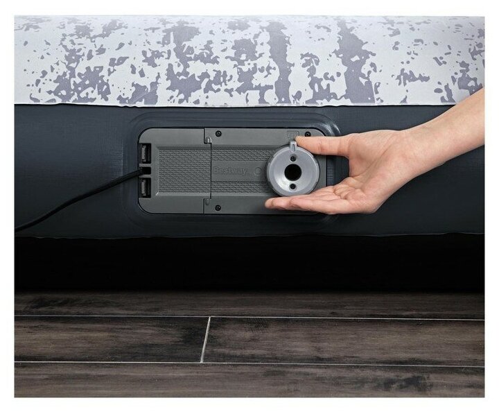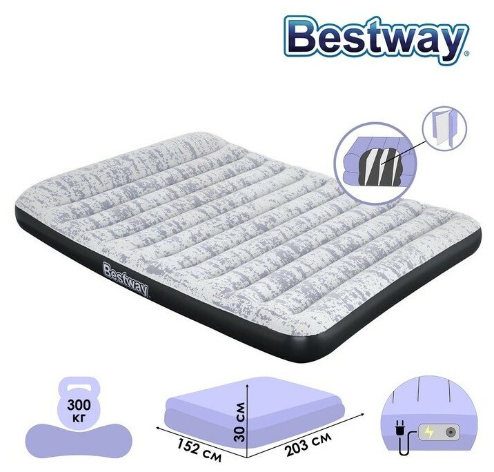 Кровать надувная BESTWAY Queen, 203x152x30 см, со встроенным электронасосом, серый/синий