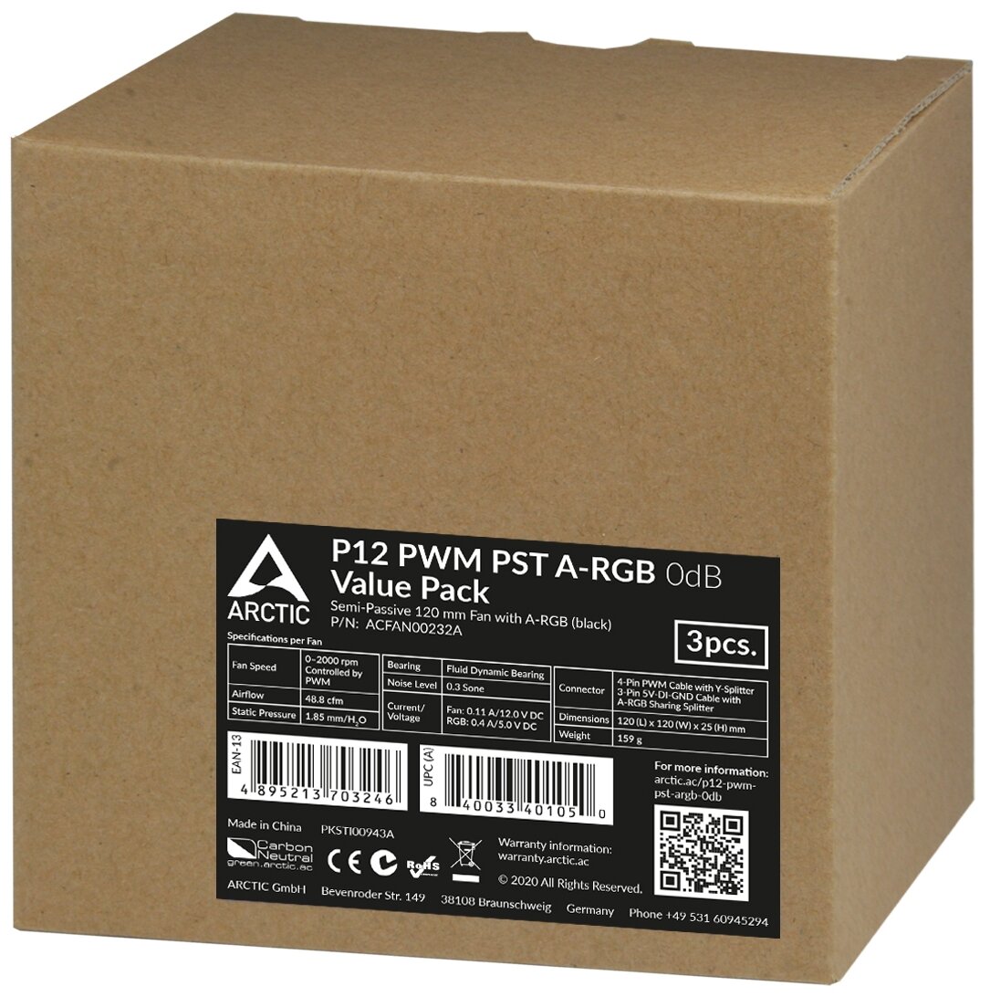 Вентиляторы для корпуса Arctic P12 PWM PST A-RGB 0dB Value Pack ACFAN00232A