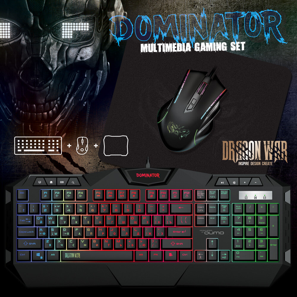 Игровой набор Qumo Dominator K66/M83, кл-ра проводная, 104+8 клавиш, мышь, коврик
