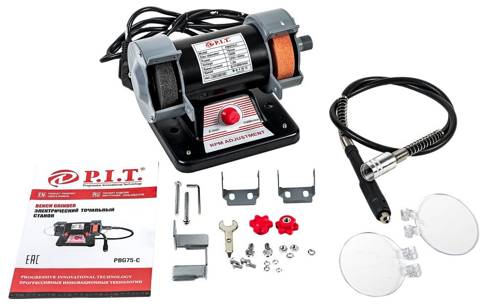 Станок точильный мастер (160Вт, 75 20 10мм, 0-11000 об/мин, гибкий вал-гравер) PIT PBG75-C интересное: