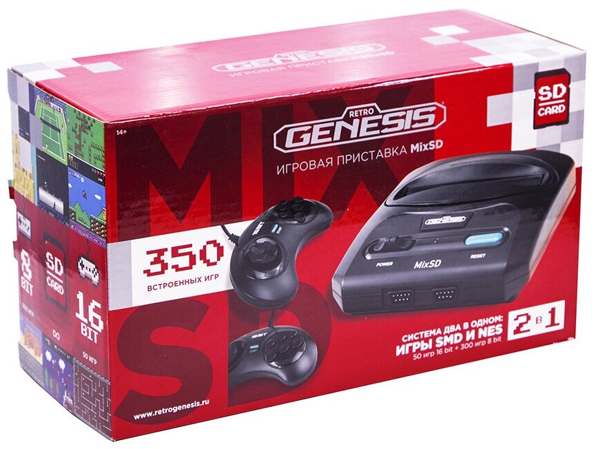 Игровая приставка Retro Genesis MixSD (8+16Bit) + 350 игр ( модель: ZD-01D, серия: ZD-00, AV кабель, microSD слот, 2 проводных джойстика)