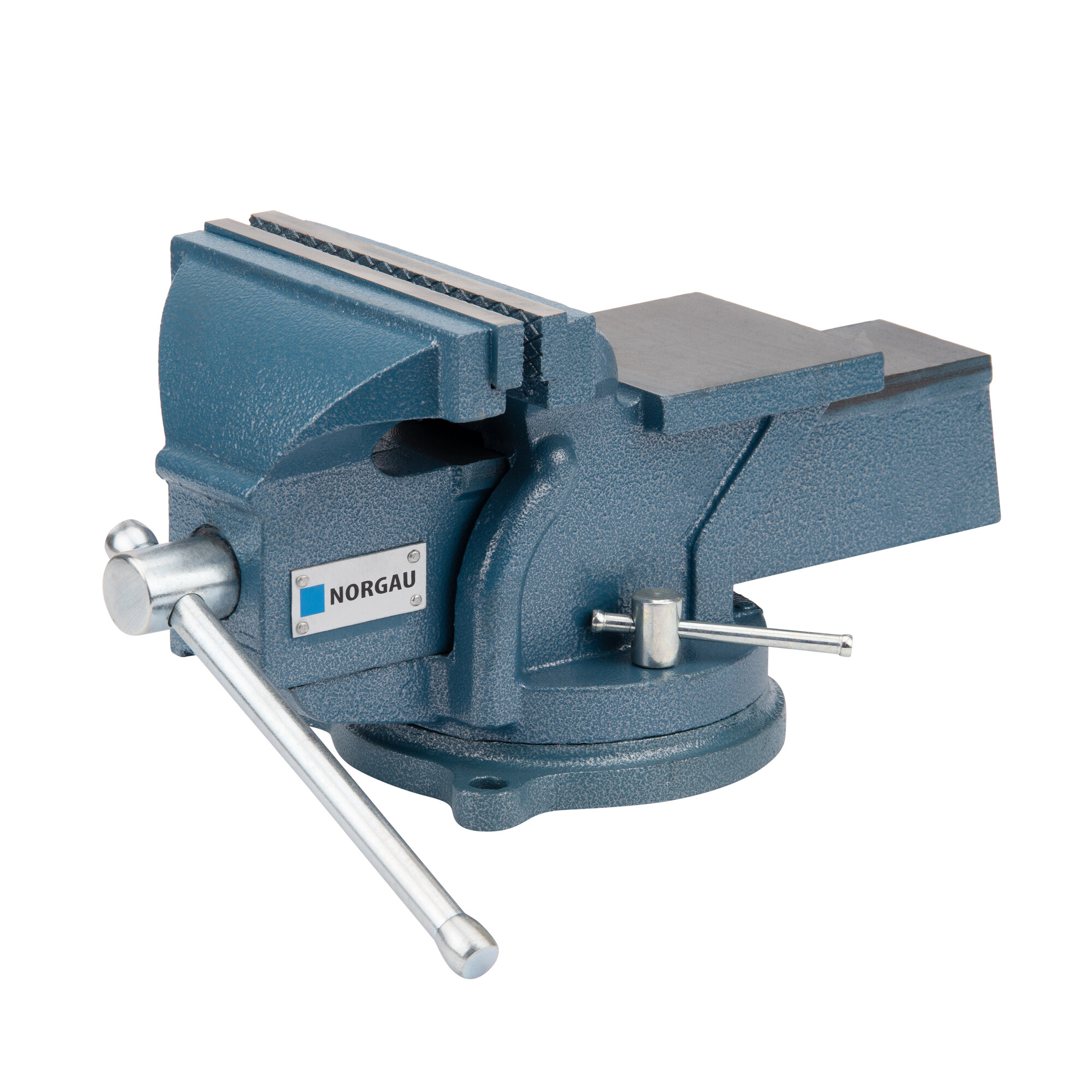 Тиски настольные поворотные слесарные NORGAU Industrial с 2 фиксаторами и наковальней, ширина сменных губок 125 мм, 283x146 мм