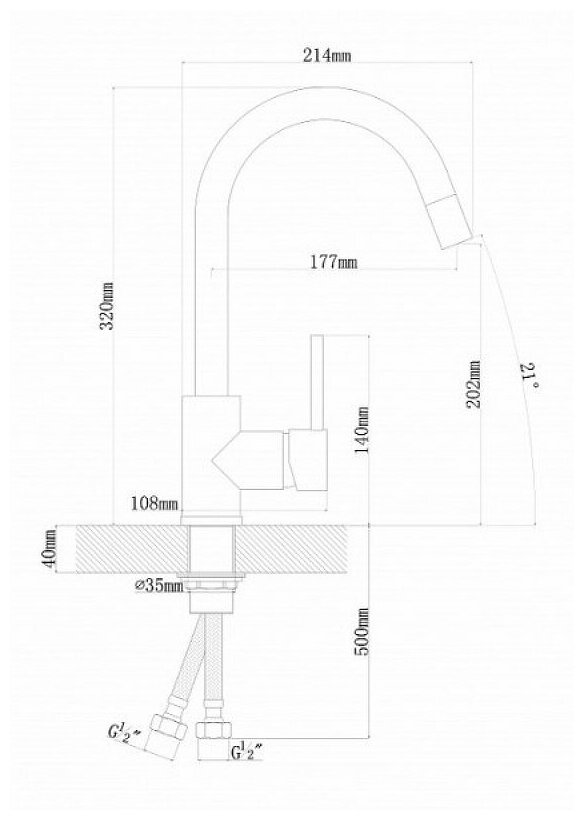 | Длина излива | 177 мм |