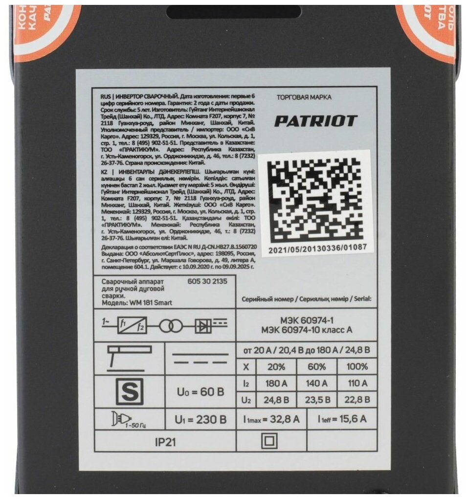 PATRIOT 605302135 WM 181SMART MMA Аппарат сварочный