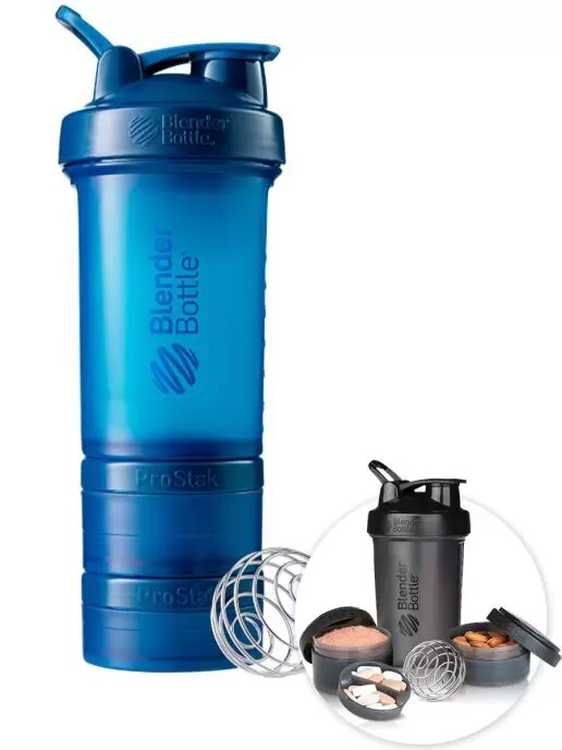 Шейкер спортивный BlenderBottle ProStak бутылка для воды и спортивного питания с контейнерами (100мл,150мл) 624мл, синий