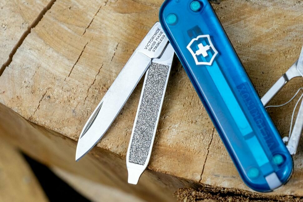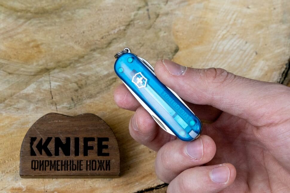 Нож-брелок Victorinox Classic SD Colors Sky High, 58 мм, 7 функций, полупрозрачный синий