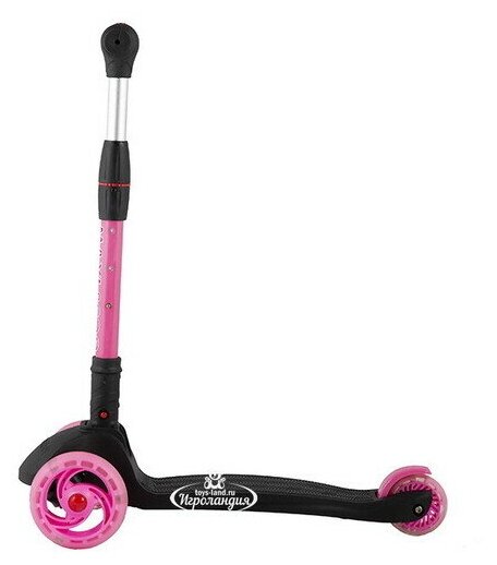 Самокат 3-х колесный Складной "Baby Delux" (2021), со Светящимися Колесами, Черный с Розовым