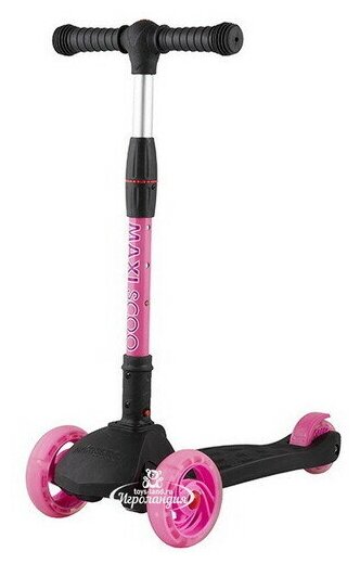 Самокат Maxiscoo 3-х колесный Складной "Baby Delux", со Светящимися Колесами, Черный с Розовым