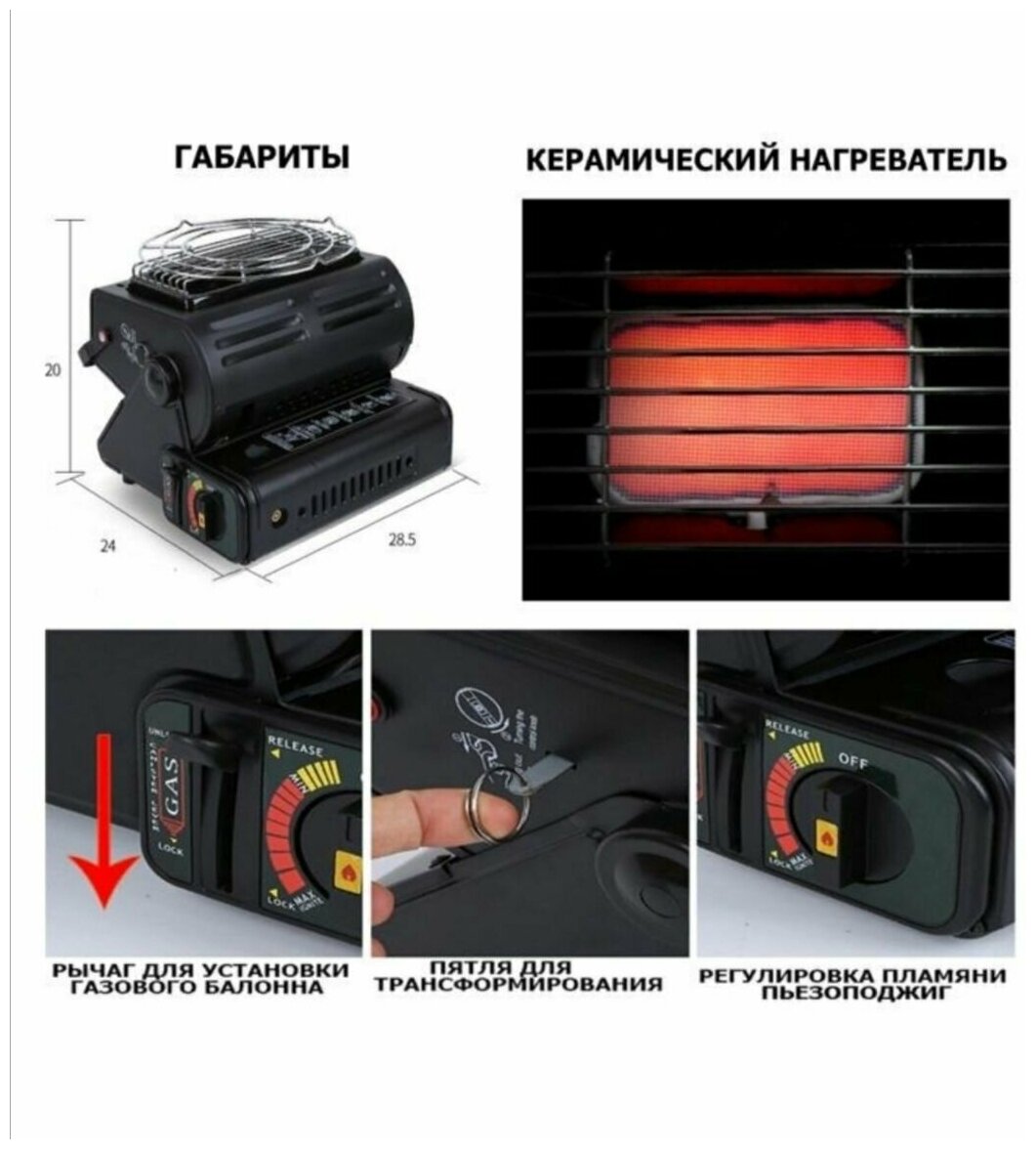 Обогреватель плита 2 в 1 HH-808B портативная газовая под баллон с переходником интересное: