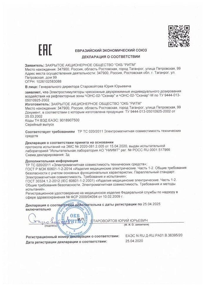 Чрескожный нейростимулятор ЧЭНС-02 «Скэнар» интересное: