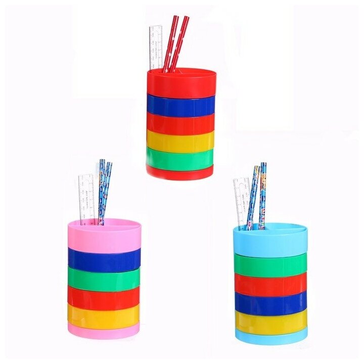 Calligrata Настольный набор детский «Веер - радуга», из 5 предметов: подставка, ножницы, линейка, 2 карандаша, микс