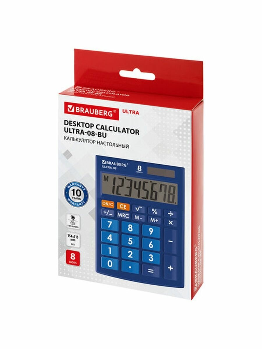 Купить Калькулятор настольный BRAUBERG ULTRA-08-BU, компактный (154x115мм), 8 разрядов, синий, 250508
