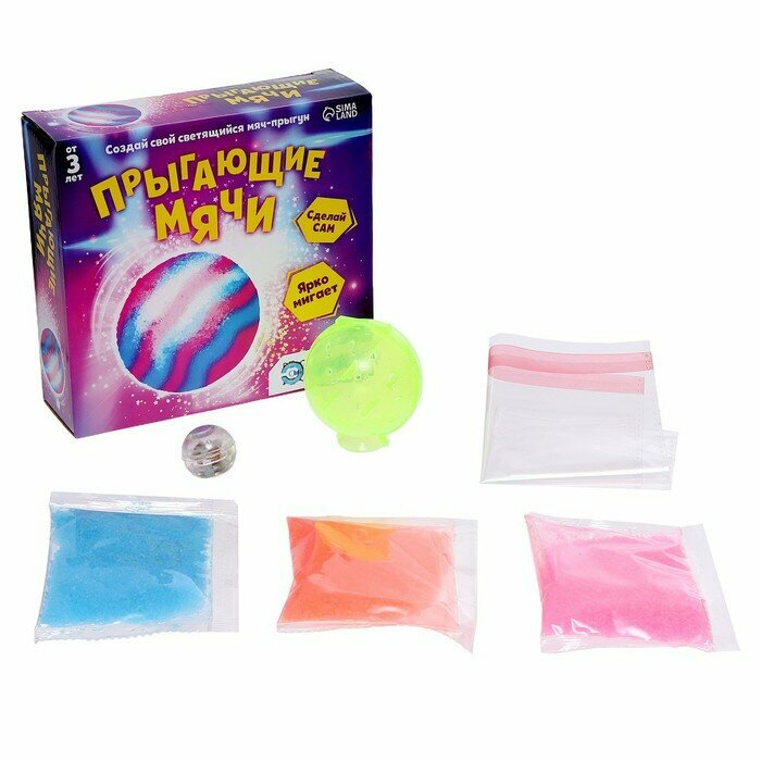 Набор опытов для детей Эврики "Прыгающие мячи", 3 цвета, сделай сам, ярко мигают