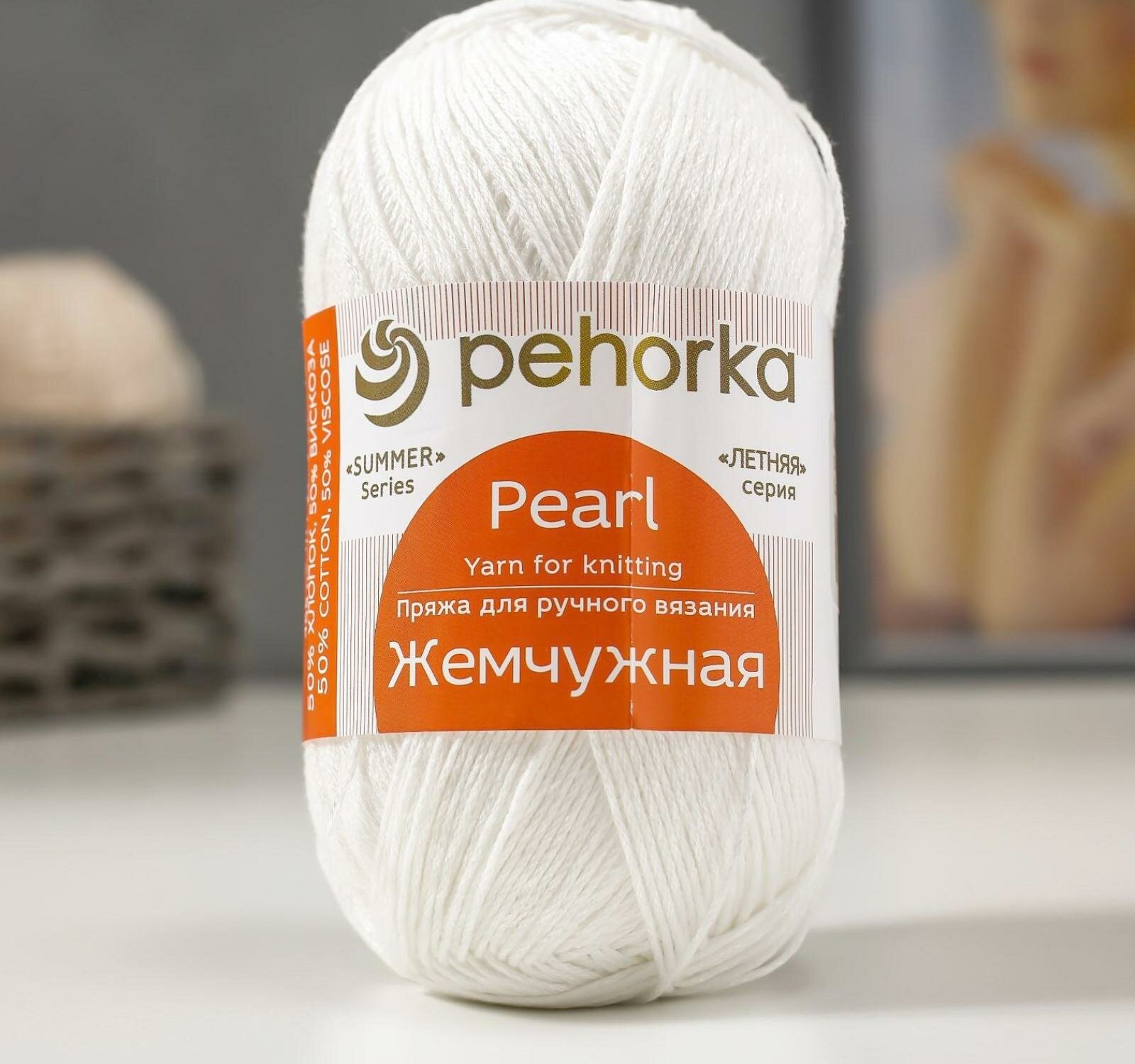 Пряжа Пехорка Жемчужная белый (0001), 50%хлопок/50%вискоза, 425м, 100г, 1шт