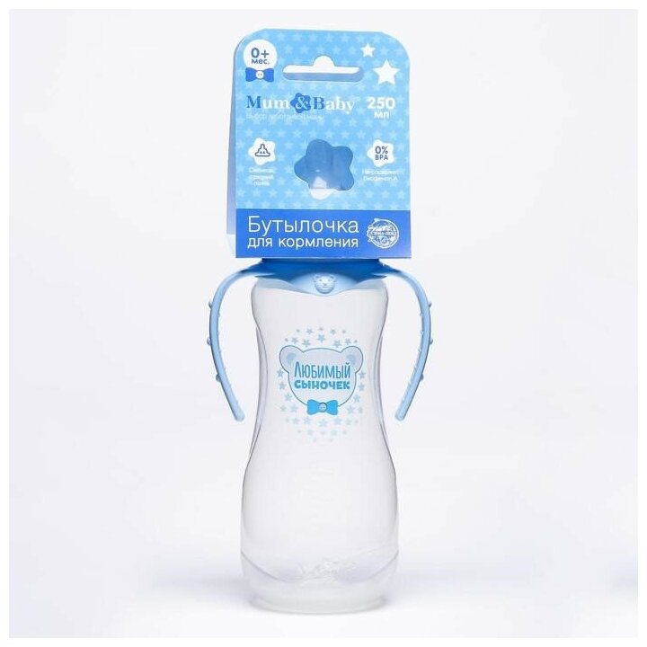 Бутылочки Mum&Baby Бутылочка для кормления «Любимый сыночек» детская приталенная, с ручками, 250 мл, от 0 мес., цвет голубой