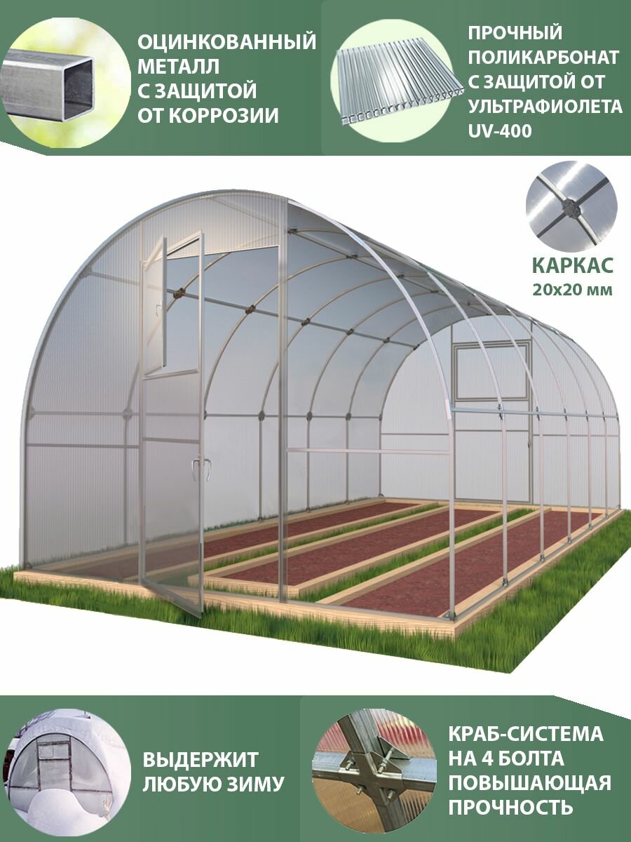Теплица арочная (Поликарбонат в комплекте) 2.5 х 6 метров, оцинкованный каркас 20х20 мм Боярская