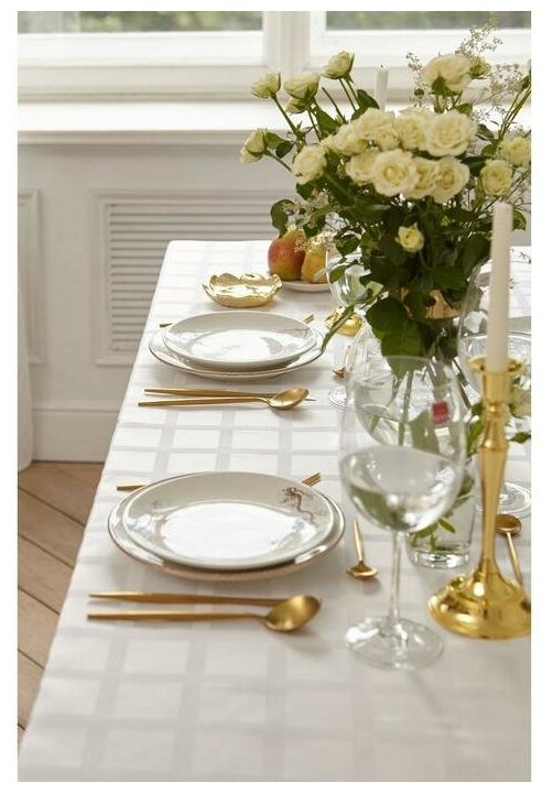 Скатерть водоотталкивающая Этель Geometry 150*250 +/-3см, цв.белый, пл. 192 г/м2, хл