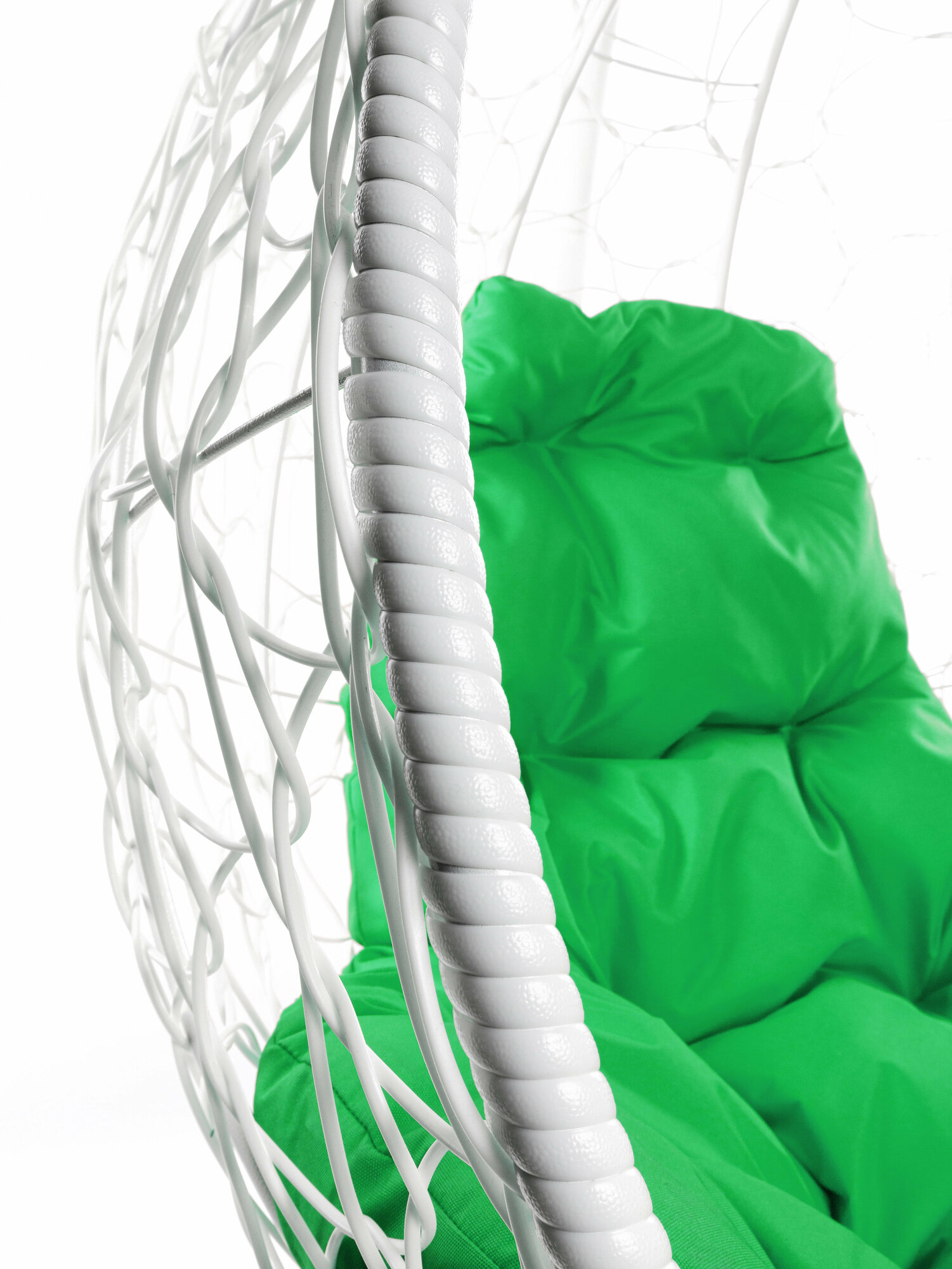 Подвесное кресло капля ротанг белое (без стойки), зелёная подушка