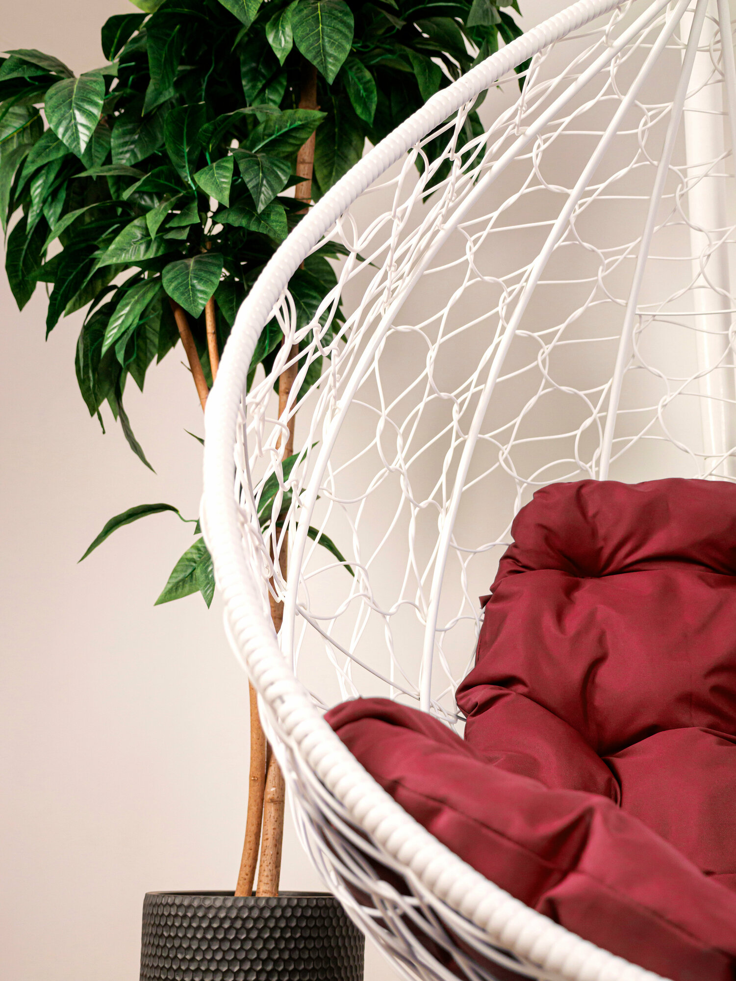 Подвесное Кресло-Капля с ротангом Белое с Бордовой подушкой