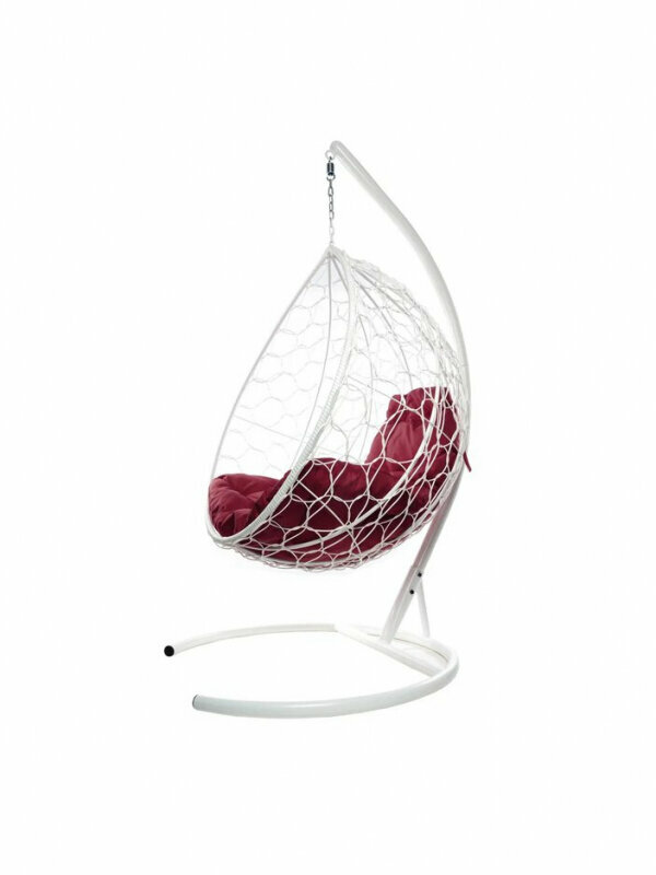 Подвесное кресло капля ротанг белое (без стойки), бордовая подушка