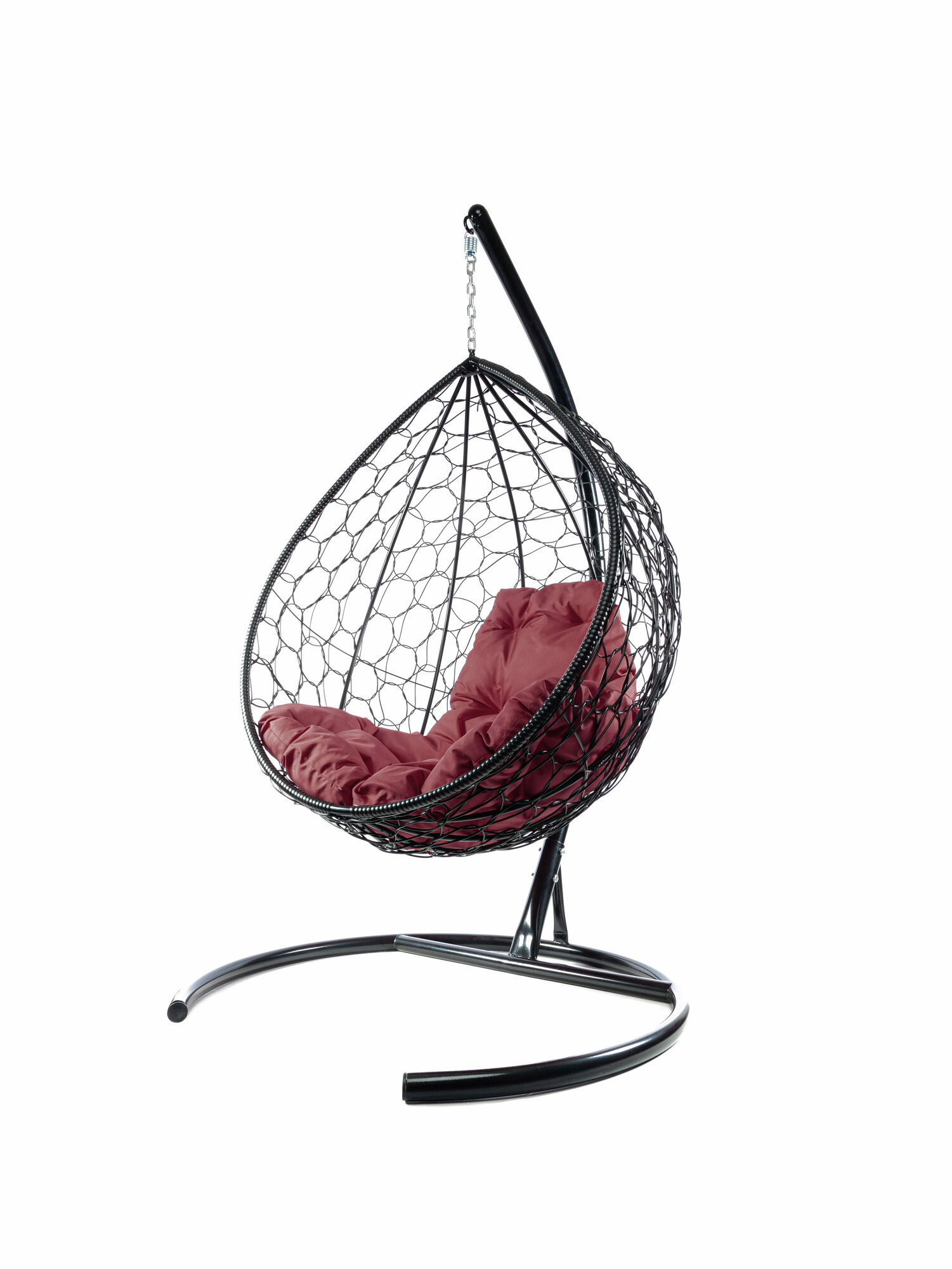 Подвесное кресло капля ротанг черное(без стойки), бордовая подушка