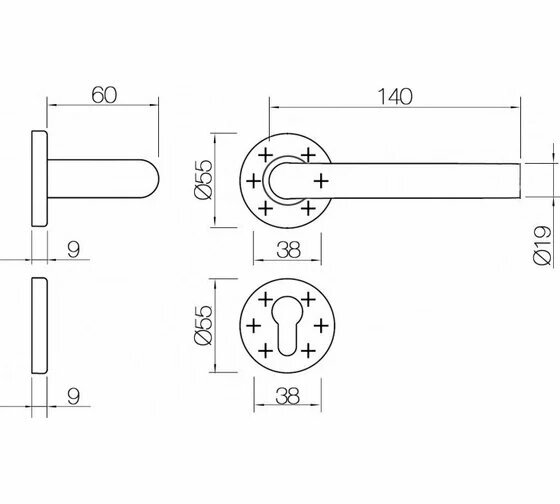 DOORLOCK Гарнитур DL 040/F-55 PZ L-form Rt нержавеющая сталь универсальный монтаж, розетка 55мм, шпиндель 8мм 73318 интересное: