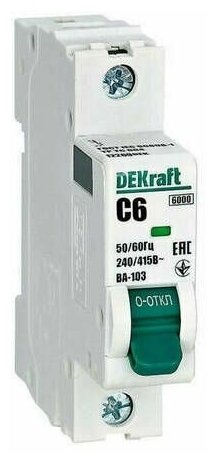 Выключатель автоматический 1п 6А характеристика C ВА-103 6кА 12269DEK DEKraft (10шт.в упак.)