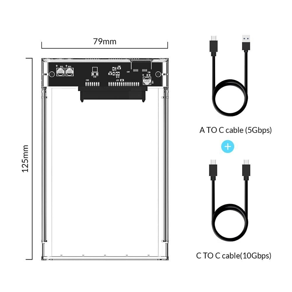 Чехол прозрачный ORICO для жесткого диска SATA - USB 3.0, 2.5", комплектация на выбор, USB-C 10Gbps Add Bag
