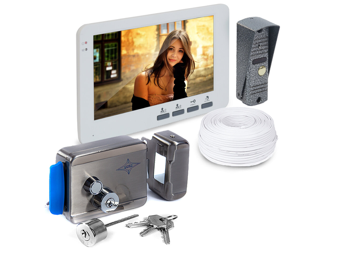 Купить Комплект цветной домофон 8-дюймов и замок: EP-4805 плюс Anxing Lock-AX091 и вызывная панель - домофон в частный дом с замком в подарочной упаковке